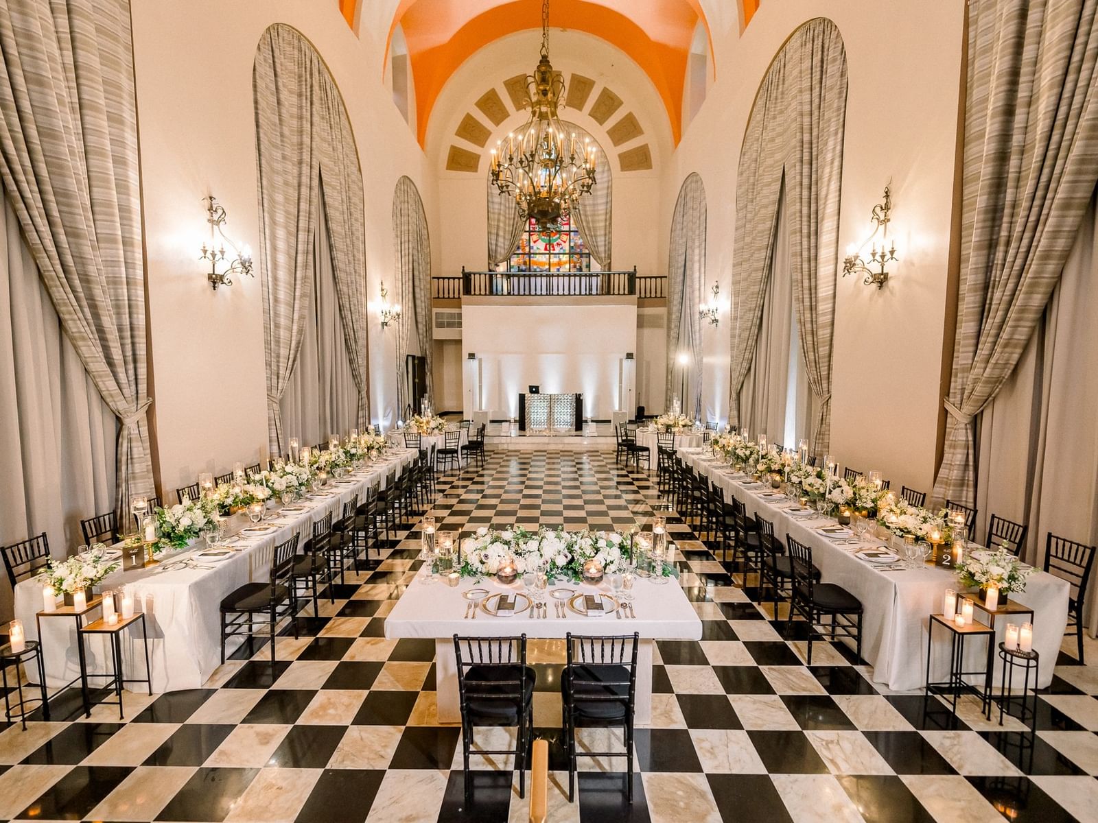 Adéntrate en un mundo de grandeza con suelos de mármol, vidrieras y un impresionante techo abovedado de 15 metros de altura, lo que convierte este espacio de 260 metros cuadrados en uno de los más impresionantes y sobrecogedores de todo San Juan.